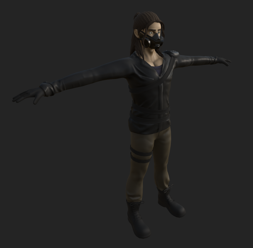 This is the character model for the main character of the game. I made this model based off of the character concepts I created.